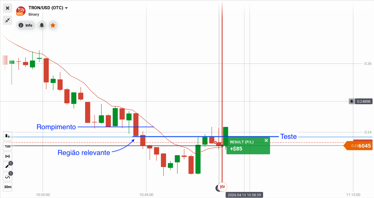 4) Aguarde um início de movimento rompendo um topo ou um fundo de acordo com o cenário que você escolheu - Vamos tomar como exemplo o cenário em demonstração.