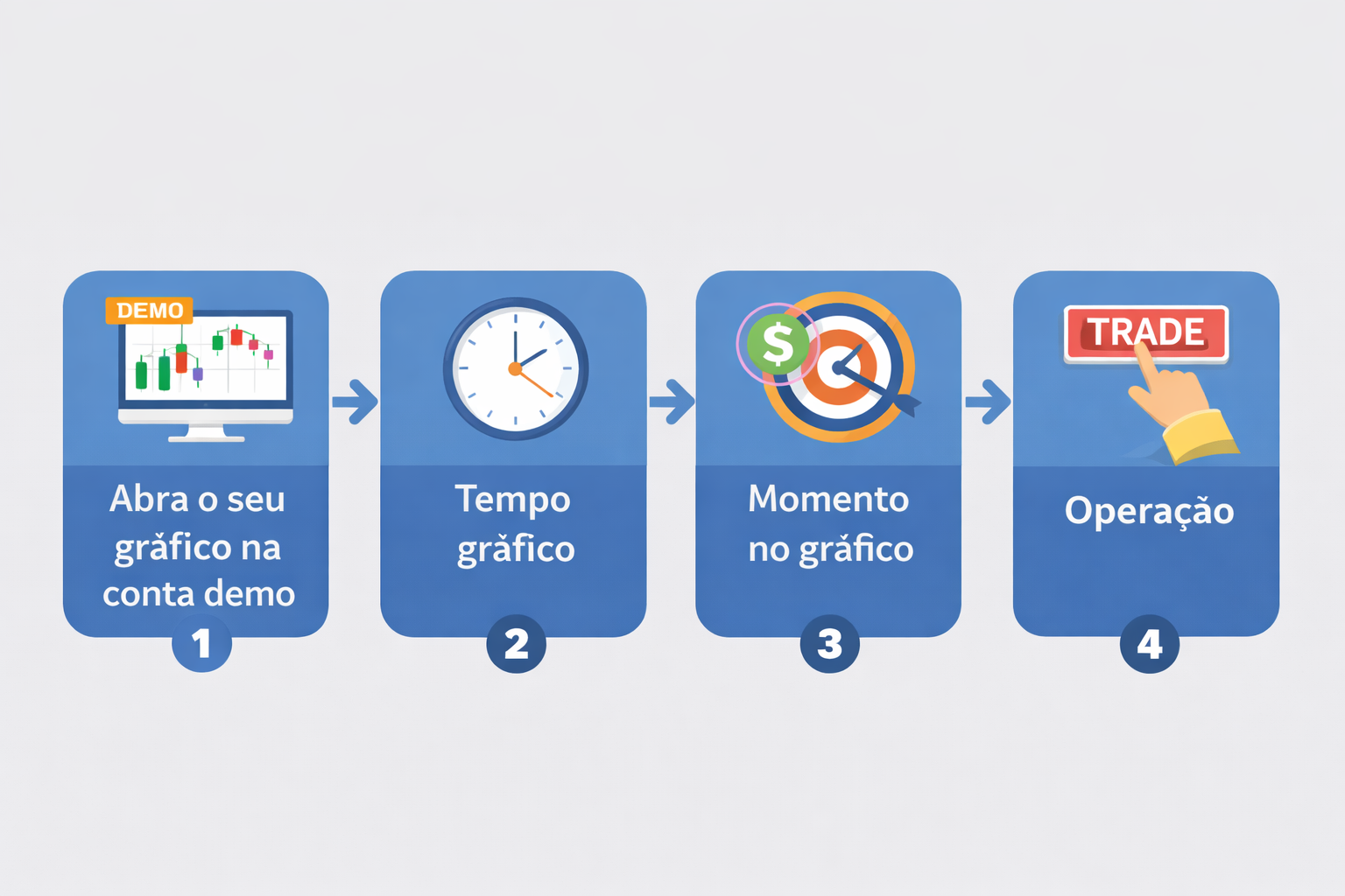 Esse passo a passo não se caracteriza como um setup, pois sua correta aplicação depende da compreensão de noções básicas sobre o movimento do preço, conhecimento que será construído ao longo da sua jornada rumo à consistência.