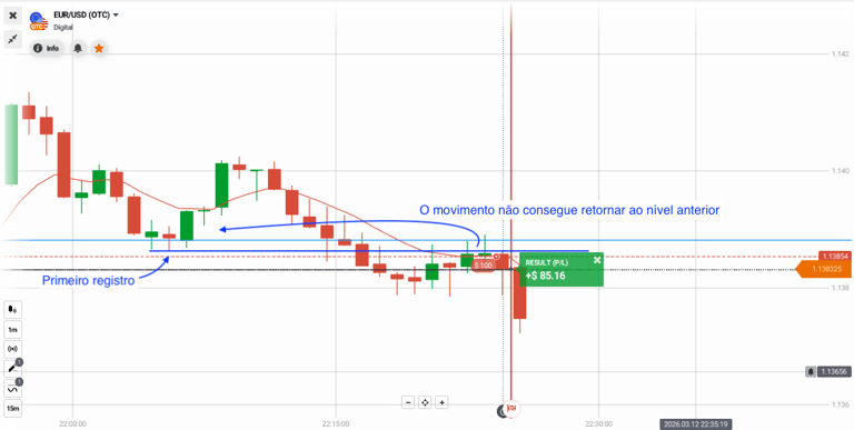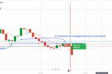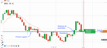 Primeiro registro é a primeira marca relevante deixada pelo preço dentro de um movimento. Ele funciona como referência inicial para a leitura do comportamento do mercado, ajudando a identificar intenção, reação e possíveis regiões de interesse para a tomada de decisão.